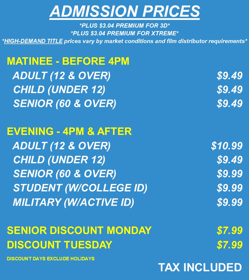 FREE MOVIE TICKETS EARNED THROUGH THE XCELLENT REWARDS PROGRAM ARE SUBJECT TO FILM DISTRIBUTOR CONTRACTUAL RESTRICTIONS AND SPECIAL ENGAGEMENT LIMITATIONS. AN UPCHARGE IS REQUIRED FOR 3D AND XTREME PRESENTATIONS.